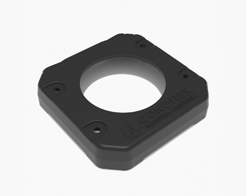Base de contrapeso: La base está fabricada en material PVC flexible de color negro, conformada en “una sola pieza” cuadrada de 30 x 30 cm, una altura de 6 cm y un peso de 2 kg.